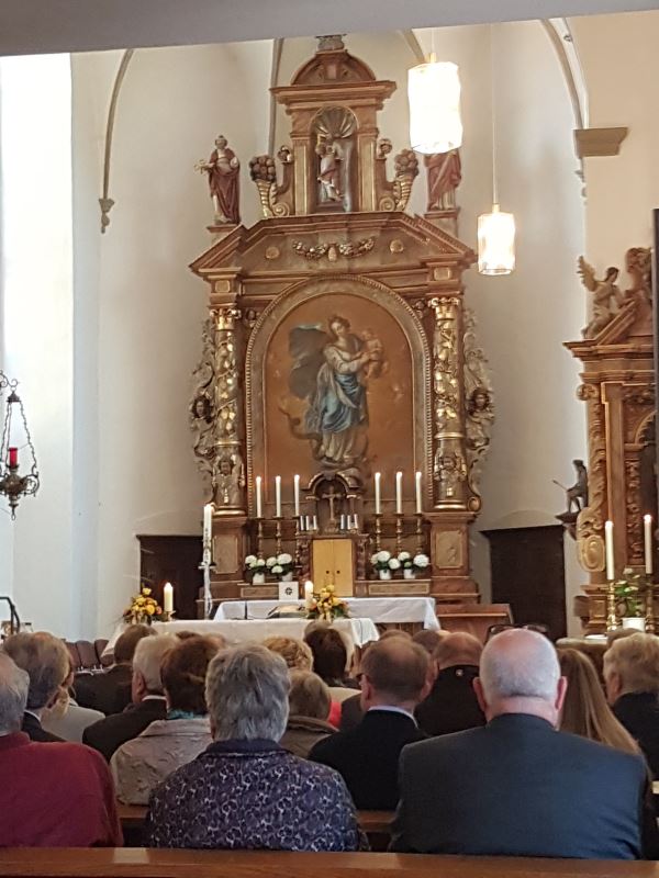 Das Wetter ist herrlich, die Kirche eine halbe Stunde vorher schon gerammelt voll. Freuen wir uns auf den Gottesdienst.
