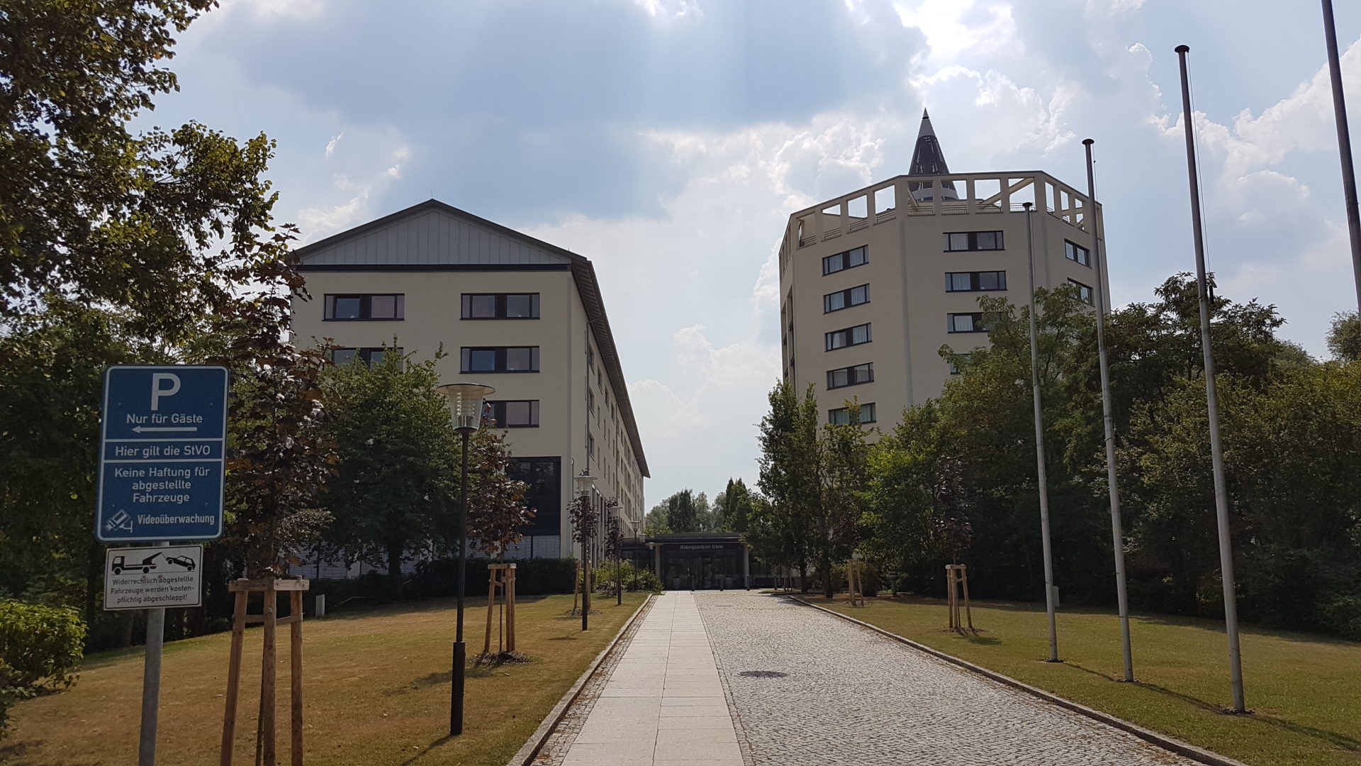 Und zum anderen, weil wir noch den Dachgarten auf dem rechten Turm unseres Hotels entdeckt haben (siehe Foto oben, ein Hotel, das eigentlich ein Bildungszentrum ist).