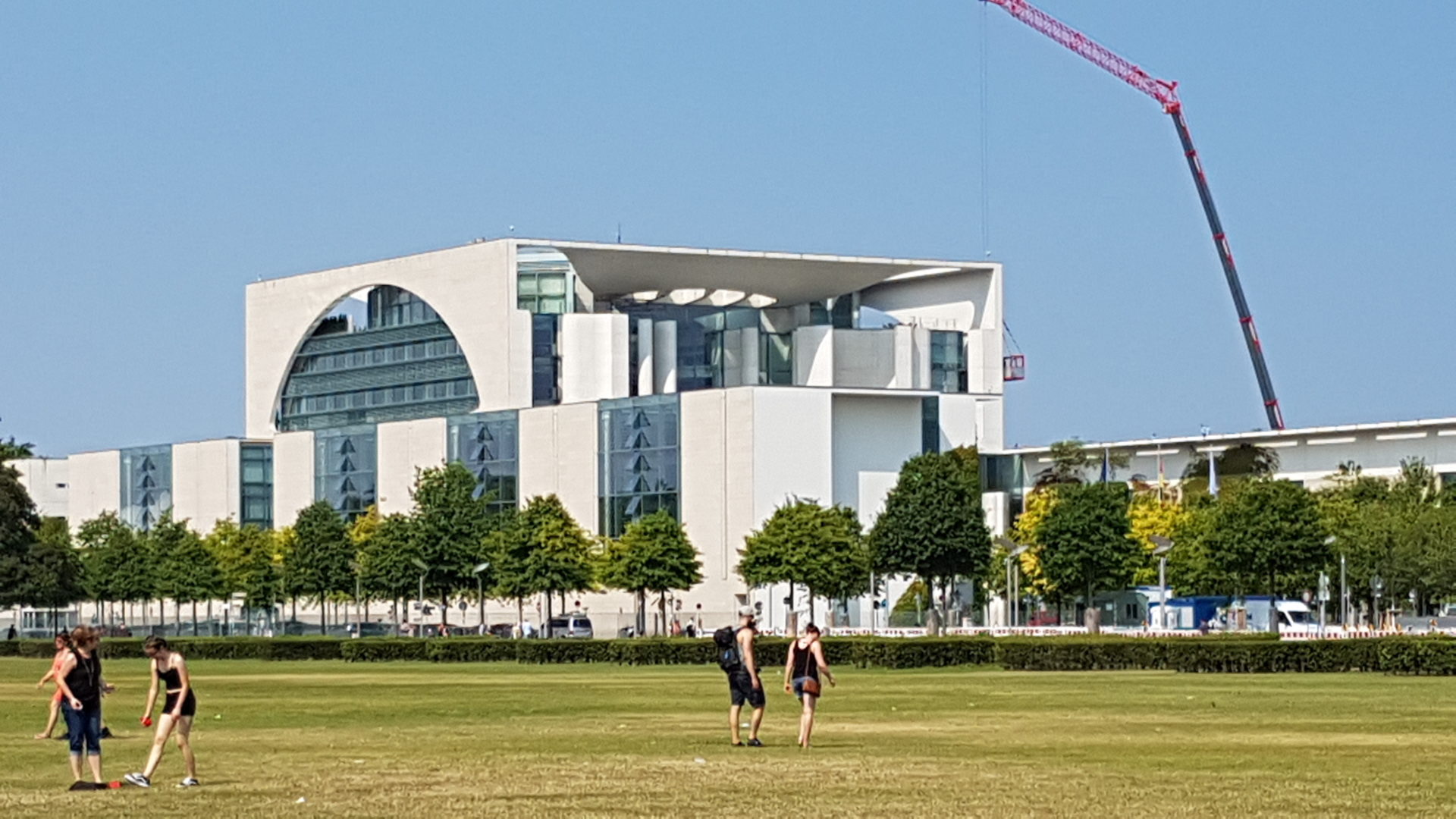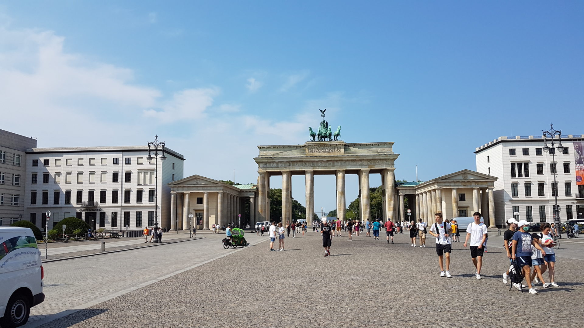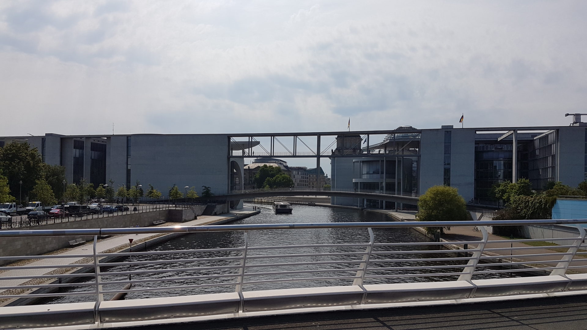 Wir sind durchs Brandenburger Tor gefahren und einmal am Reichstag und am Kanzleramt entlang. Jetzt noch 12 km bis Spandau.
