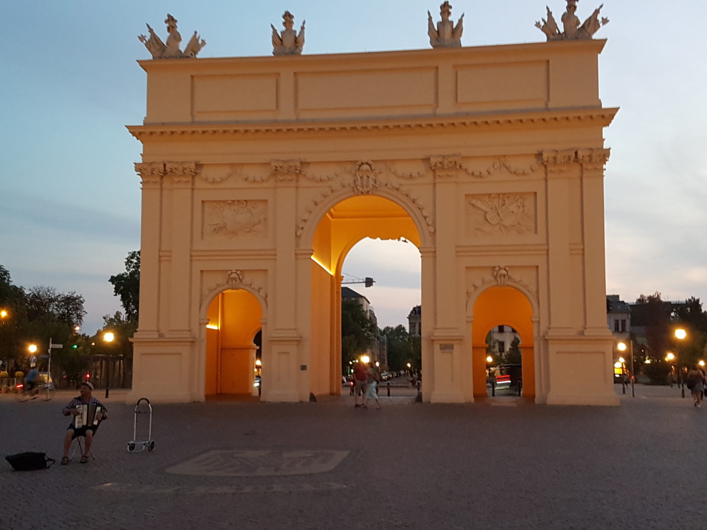 Und neue Eindrücke können wir gleich weiter hier in Potsdam sammeln, denn unser Hotel liegt am Luisenplatz mit seinem Brandenburger Tor und hinter dem Hotel beginnt der Park von Sanssouci. Und der hat bis in den Abend hinein geöffnet.
