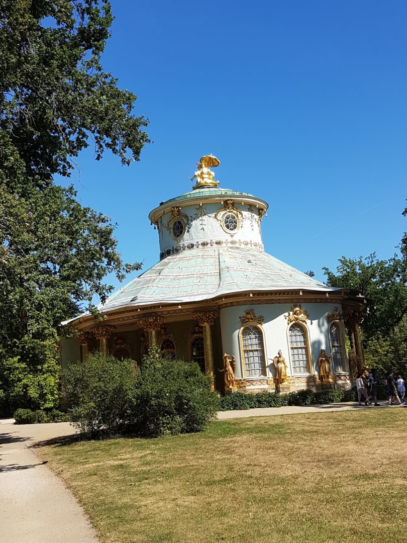Das Neue Palais und das Chinesische Haus haben wir schon gesehen, die Neue Kammer, die Windmühle und Sanssouci selbst sind noch dran. Für das Letzte haben wir als Zeitpunkt 16.40 bekommen.