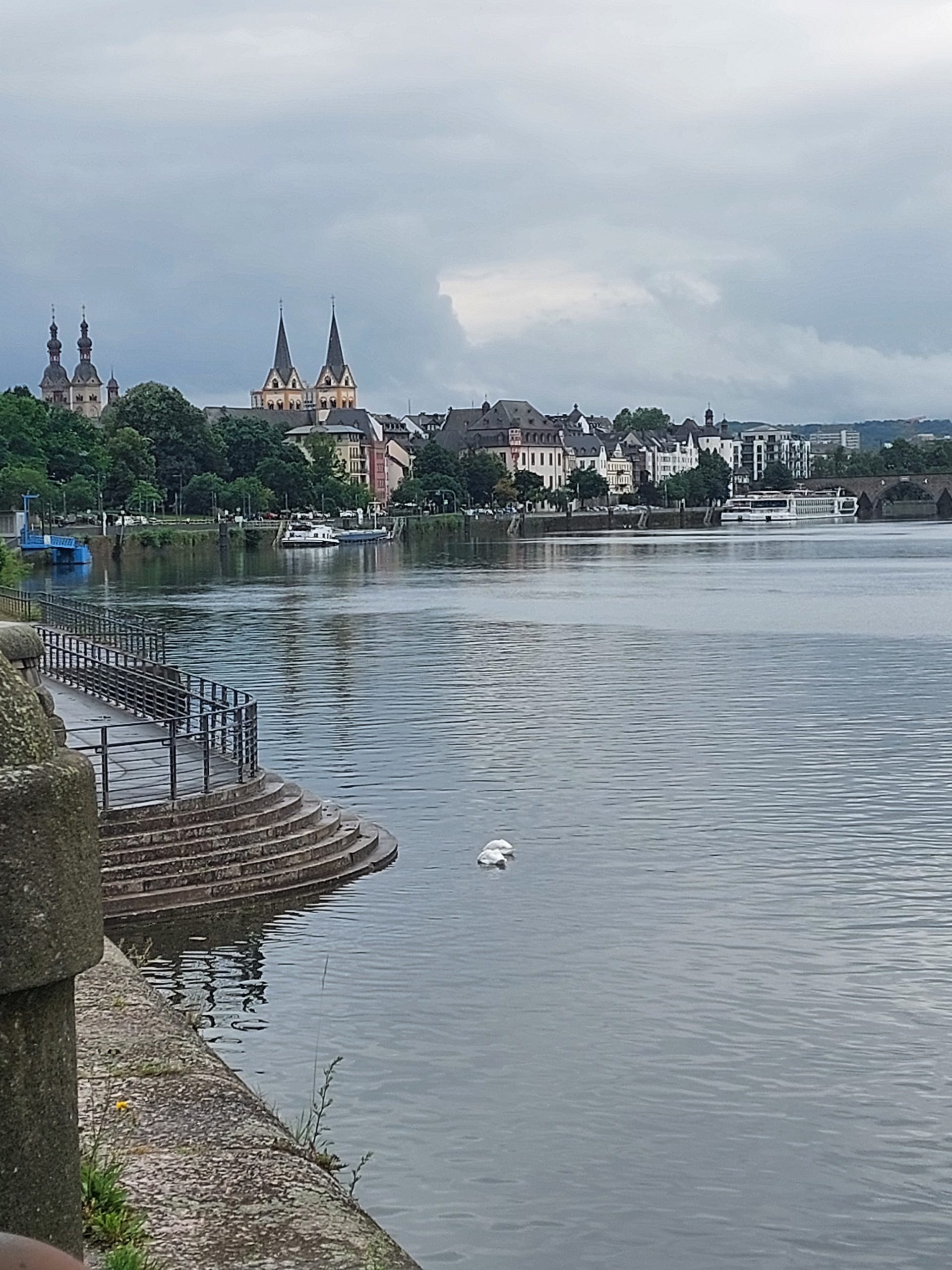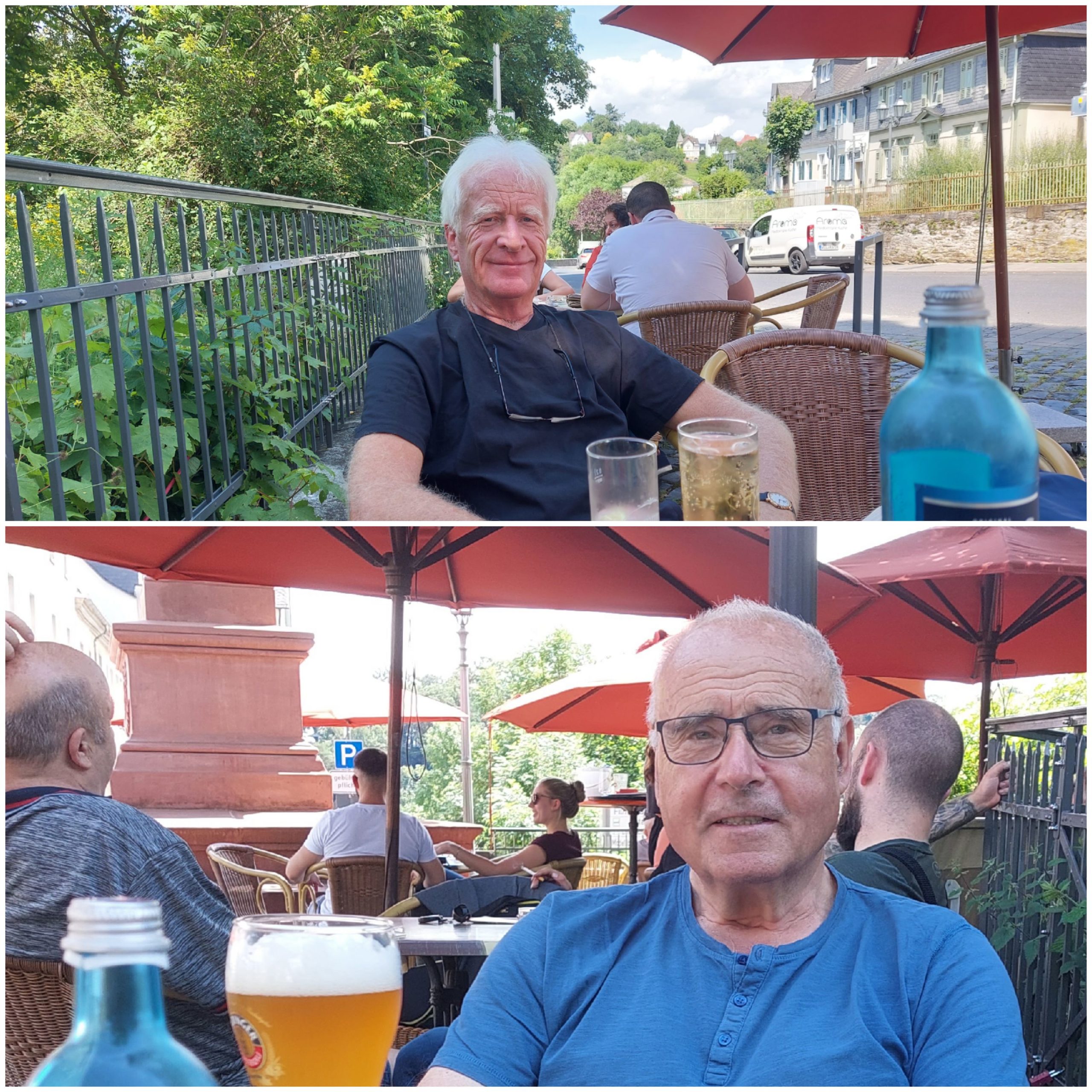 Draußen regnet es, wir sitzen im Trockenen. Dabei haben wir Glück gehabt, dass wir unseren Zug in Düsseldorf trotz Verspätung noch erreicht haben. Allerdings ist es für Leute über 70 an sich keine Herausforderung mehr, das Rad samt Gepäck die Treppen erst rauf und dann wieder runter zu tragen. Aber besser als eine Stunde warten.