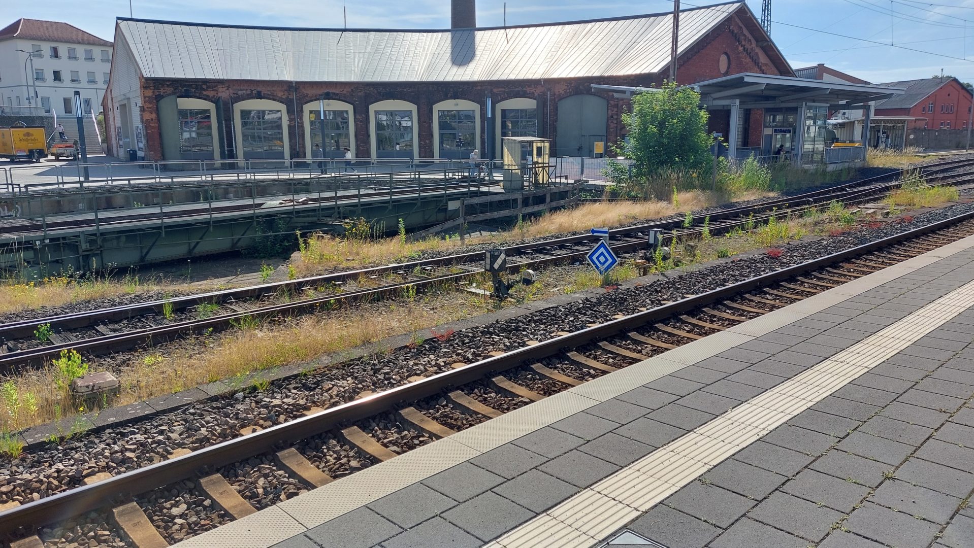 Wir warten in Bebra auf den Zug nach Eisenach.