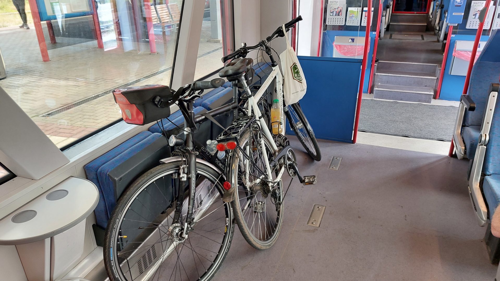 Hans-Jürgen hat uns zum Bahnhof nach Kassel gebracht. Wir sitzen bereits im Zug nach Bebra. Noch merken wir nichts vom 9Euro Ticket. Gut so.