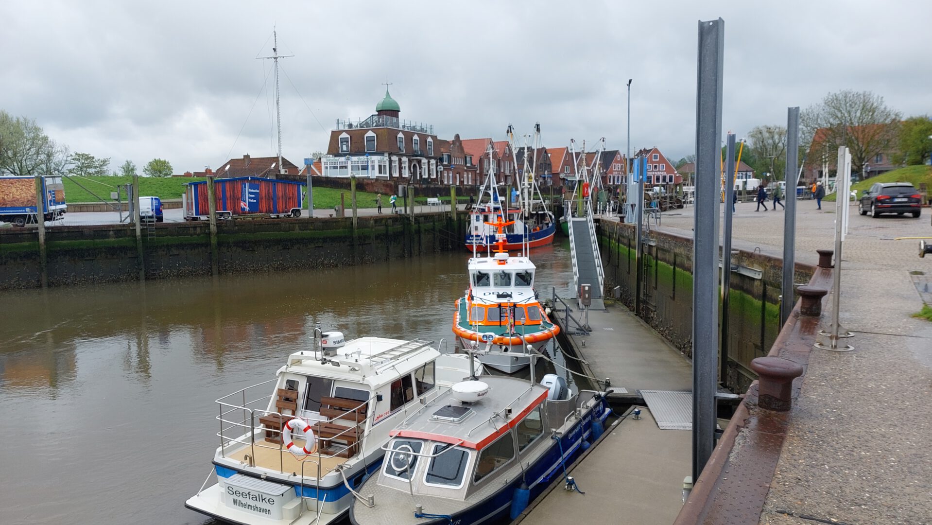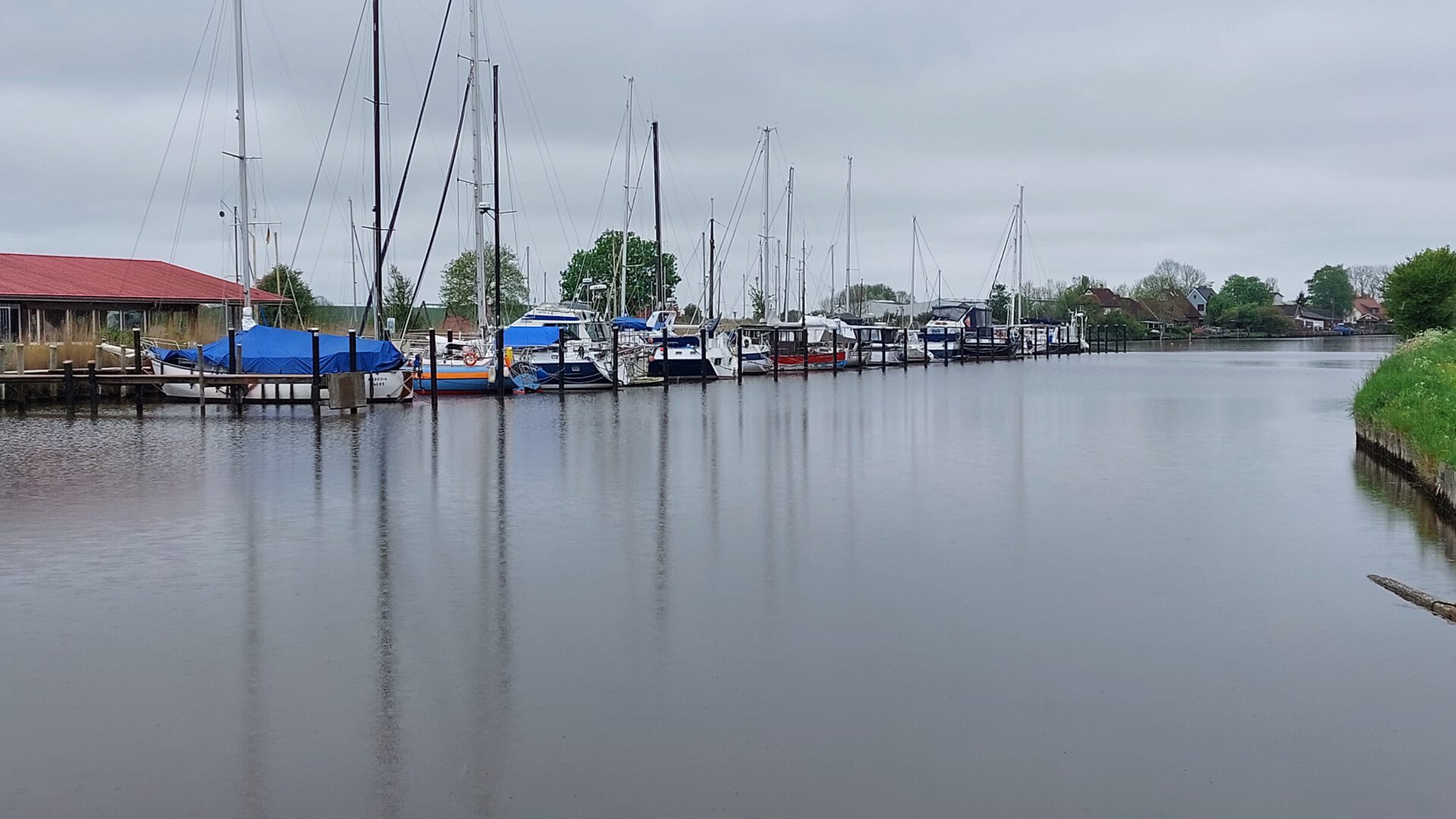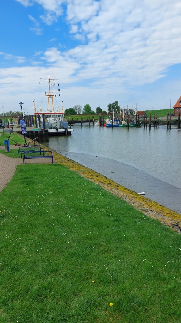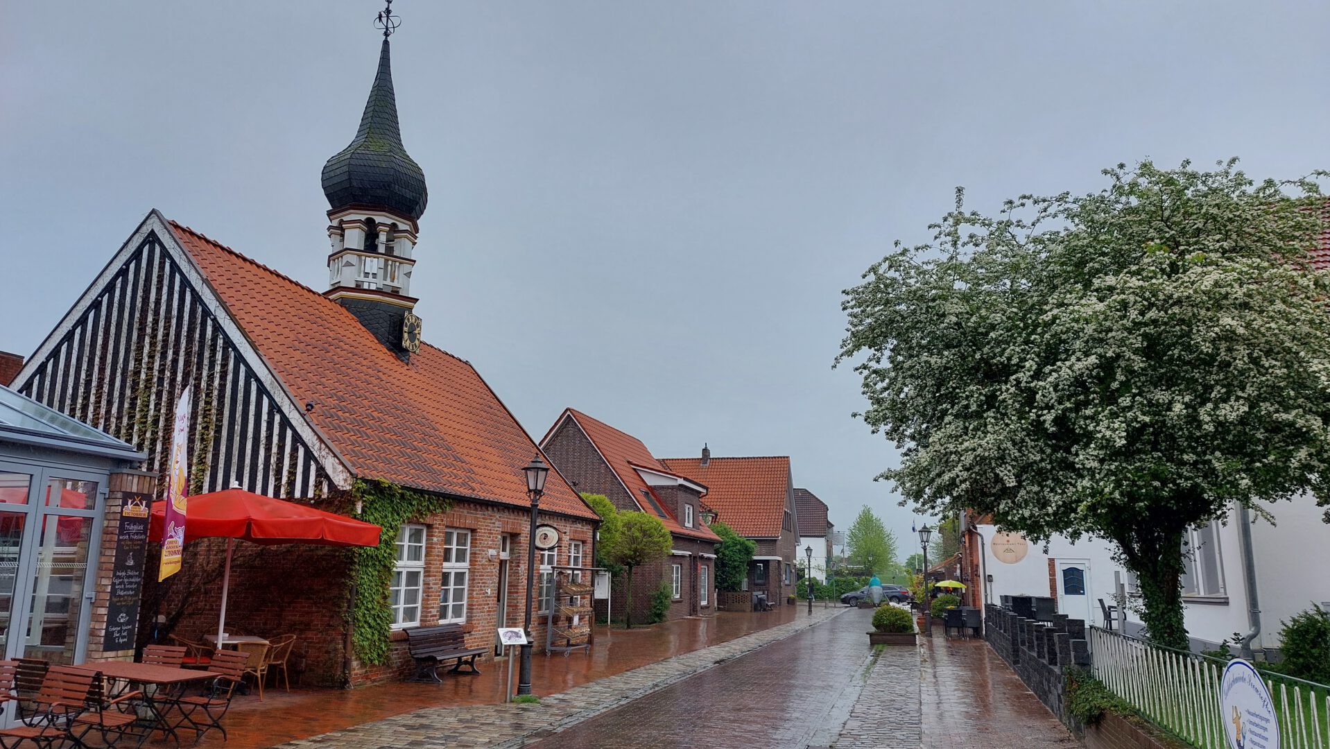 Neuharlingersiel ist erreicht, der Regen macht gerade eine Pause. Die Felder stehen unter Wasser. Und in Ostbense – etwa 3 Häuser und ein Krug– sind wir vorbeigekommen. Gruß an Christine und den Meister.