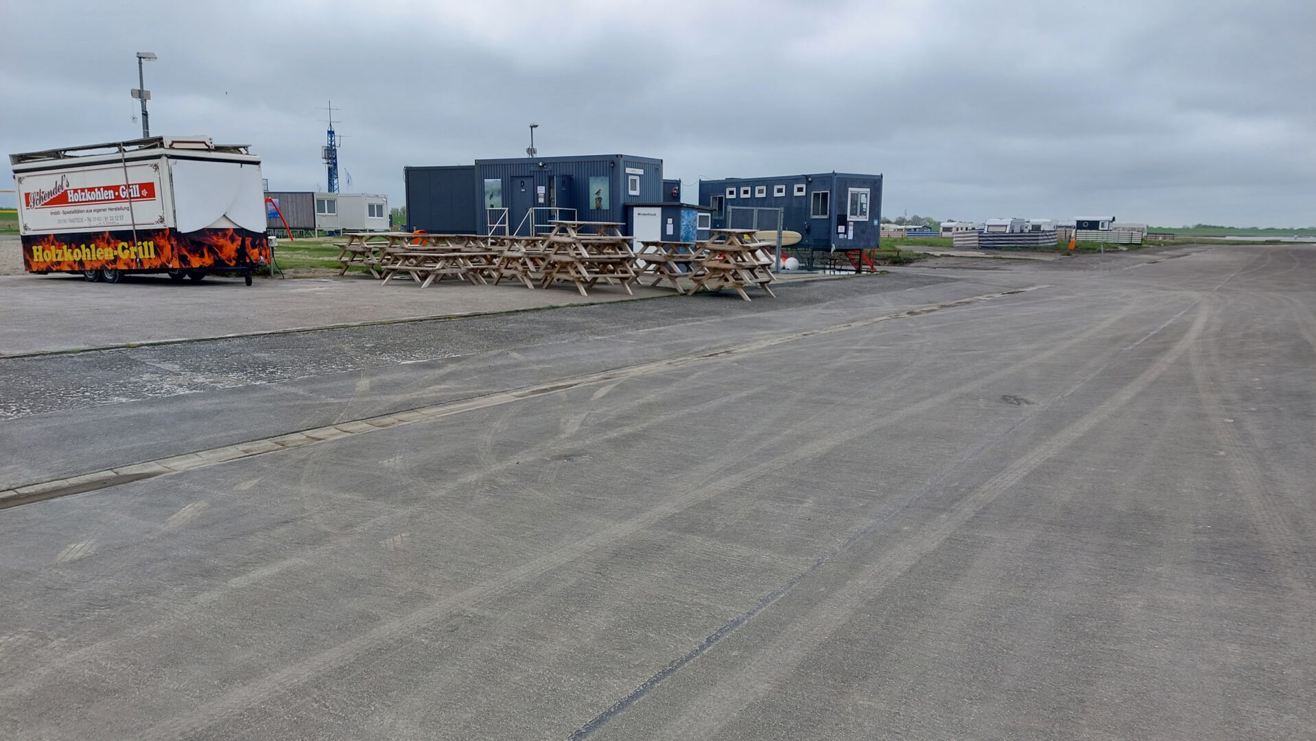 Mittagspause am Pommesstrand von Reitland. Fischbrötchen leider erst am Wochenende. (Schetschoks waren im letzten Jahr hier) Die Fahrt läuft gut trotz Gegenwind.