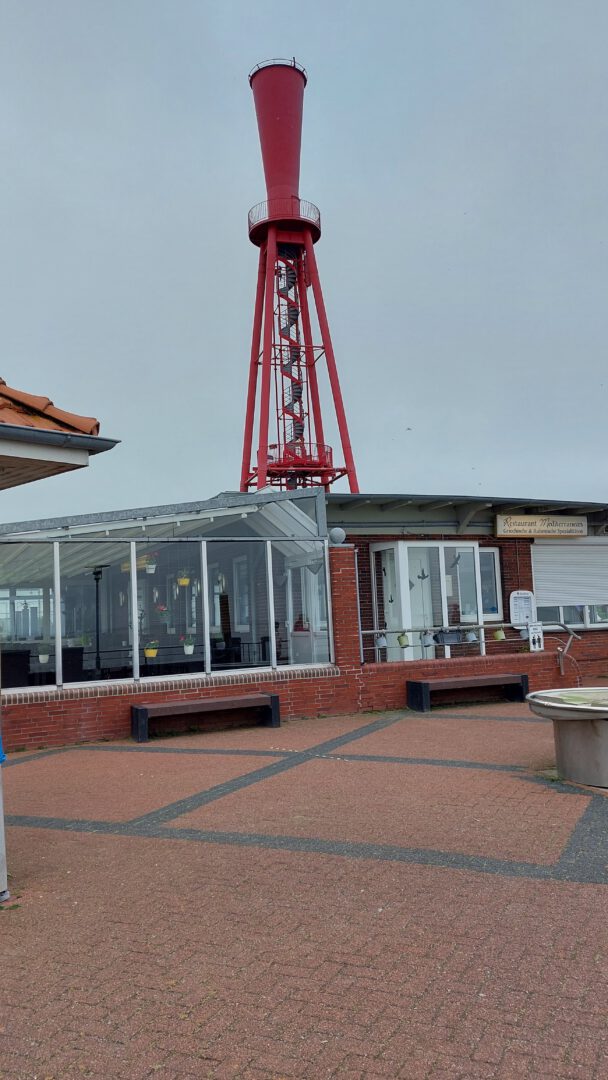 Hooksiel,was auch das Foto zeigt. Wir haben 15 km Regen hinter uns, zum großen Teil aber Rückenwind. Dann die letzte Etappe nach Wilhelmshaven.