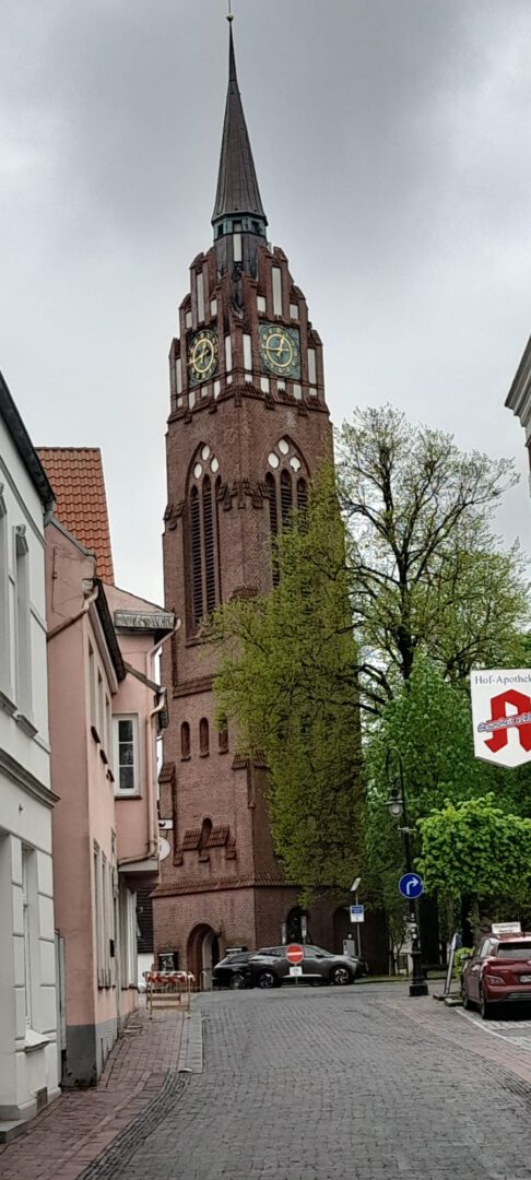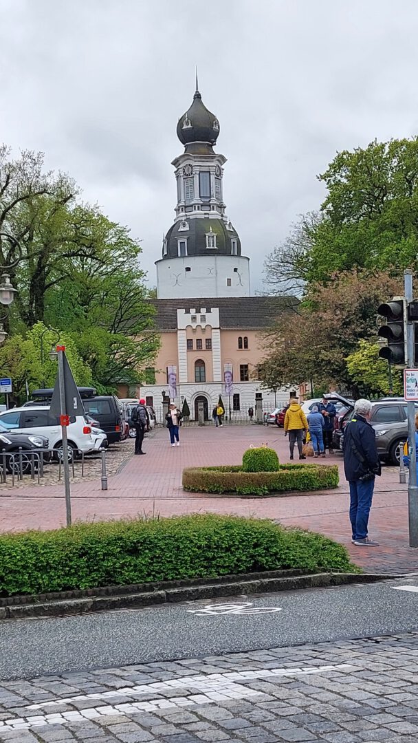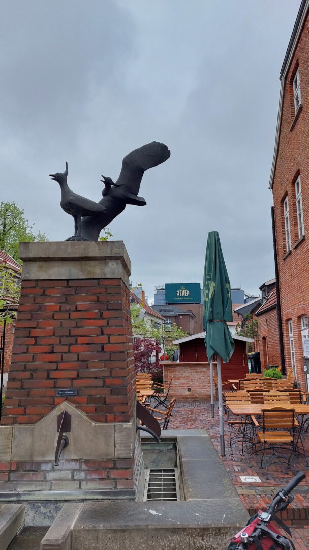 Nach gut 40 km im Nieselregen- erträglich- sind wir in Jever. Kleine Pause, in der Gerd sich etwas umsieht. Seine Fotos kommen dann heute Abend. Ich war letztes Jahr hier. Und im Moment ist es trocken.