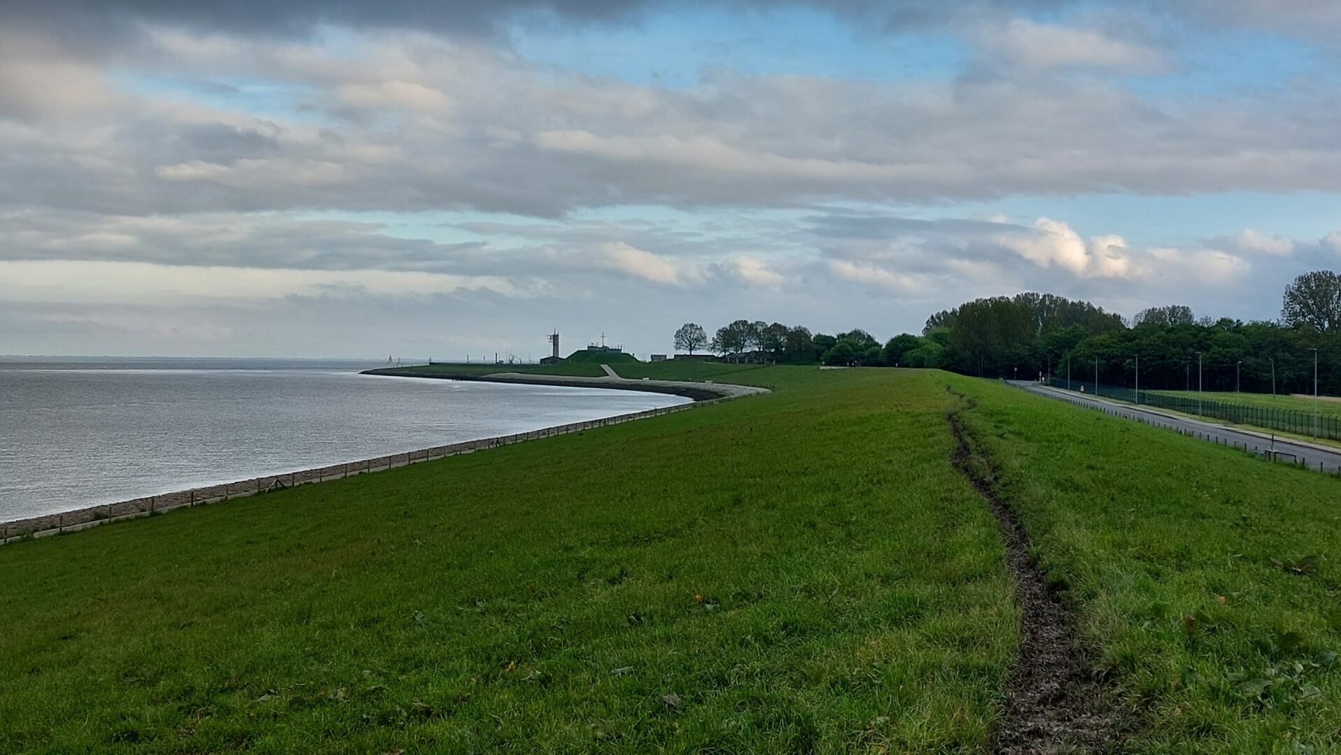 Kurz vor der Weserfähre in Blexen. Aussichtspunkt nach Bremerhaven.
