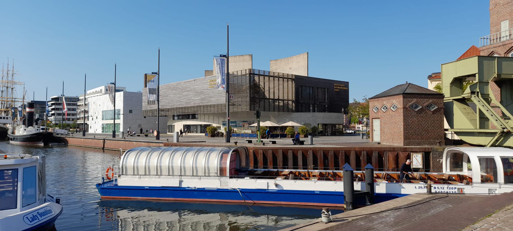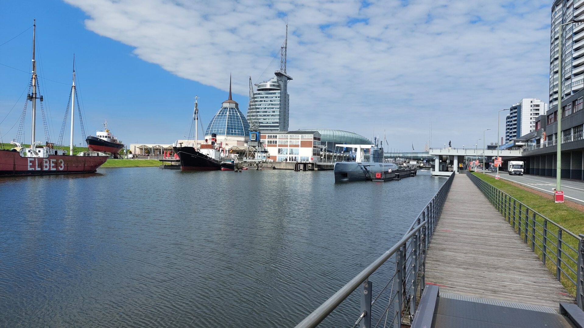 Wir waren noch im Auswandererhaus – auch sehr beeindruckend. Dann noch ein letzter Blick in den Hafen und auf die Silhouette von Bremerhaven. Jetzt aber Abendessen.