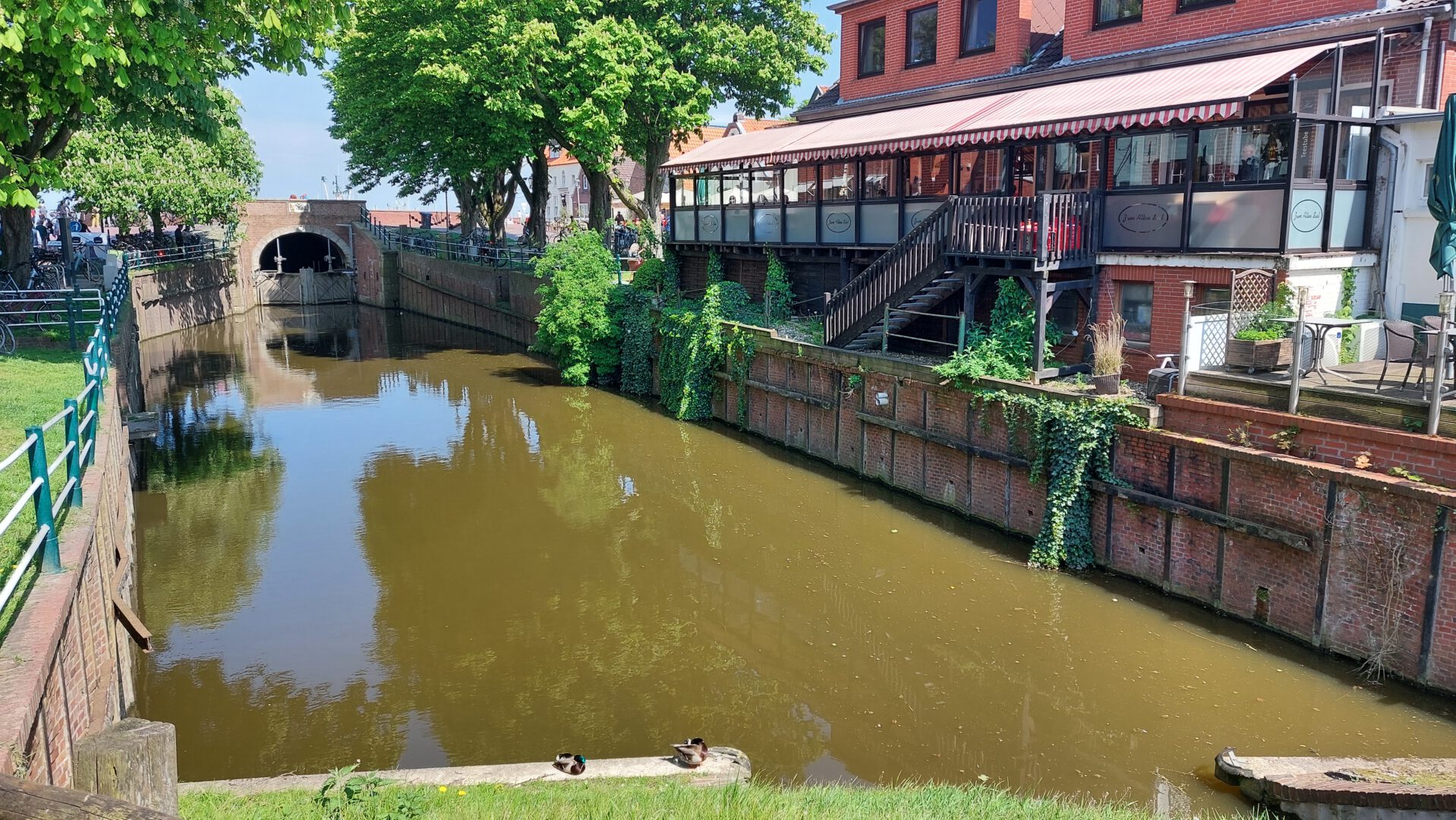 Das große Siel in Greetsiel, ansonsten gab es da nur ein Gewimmel von Leuten in unserem Alter