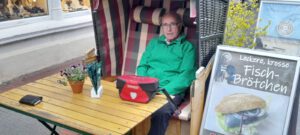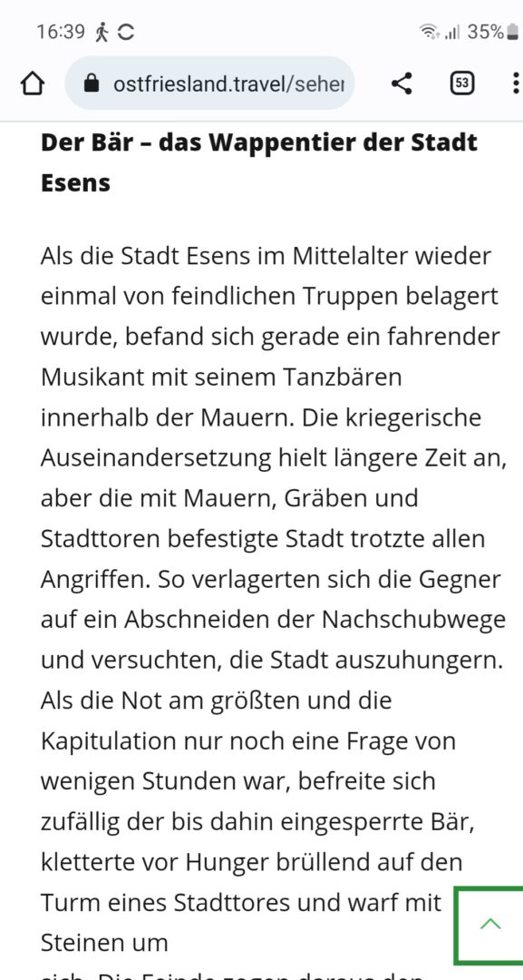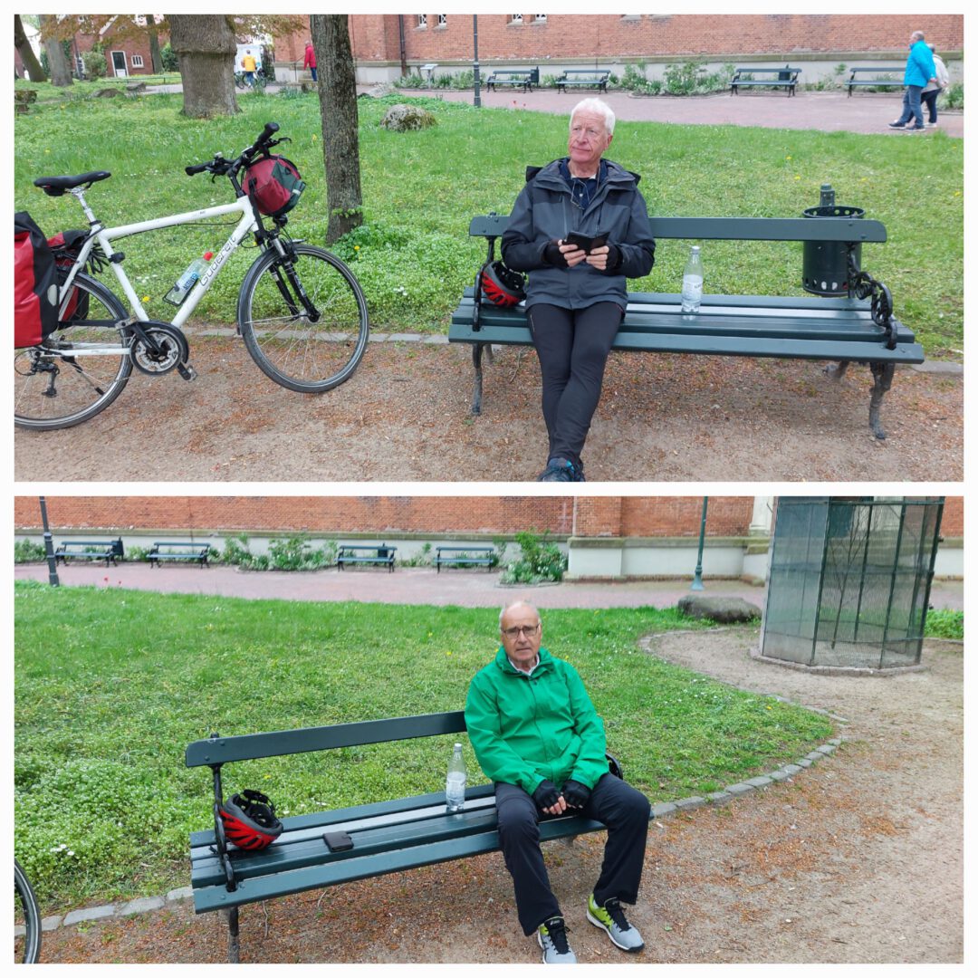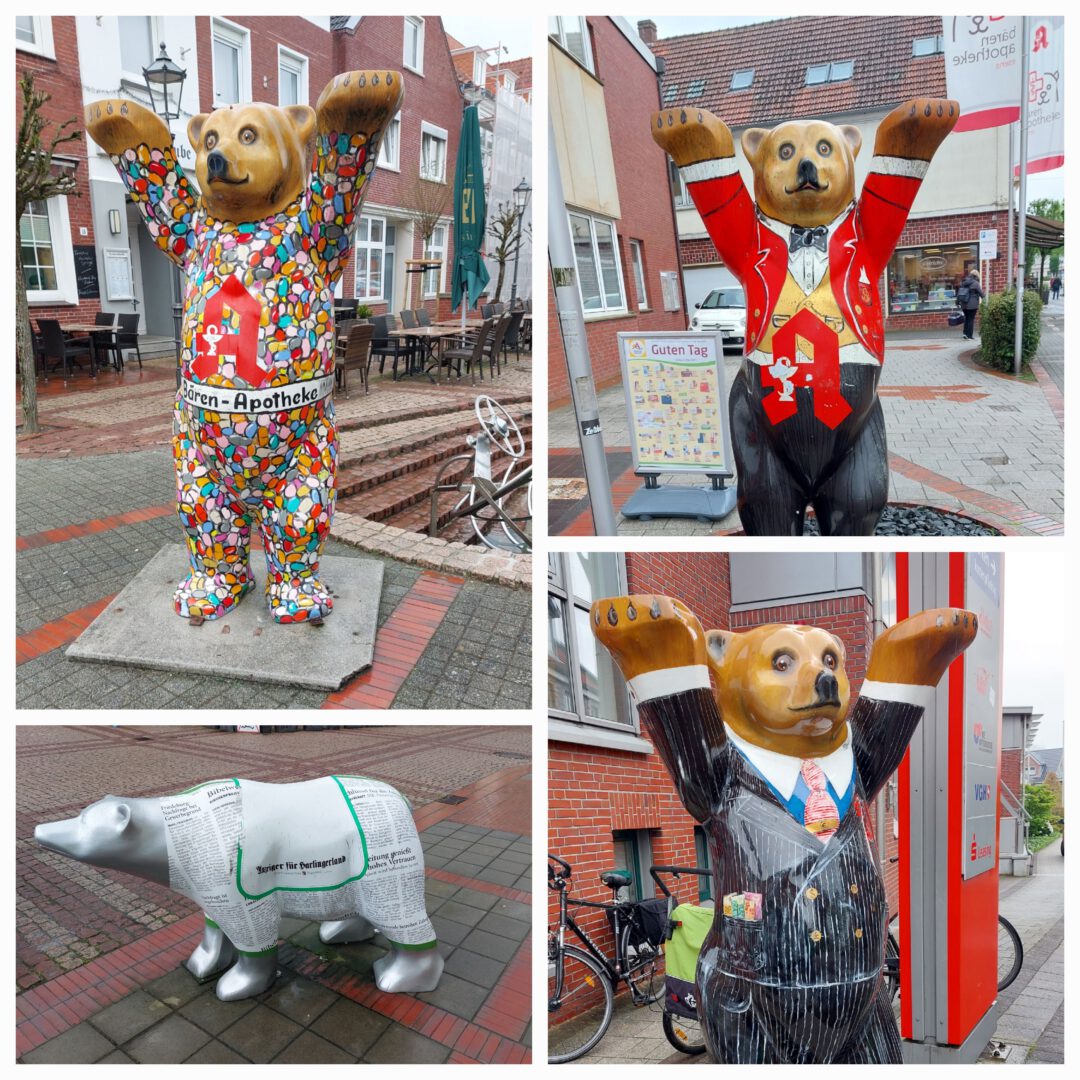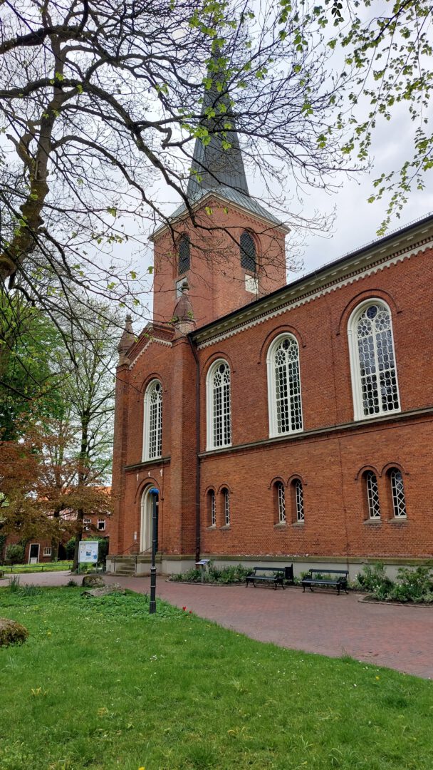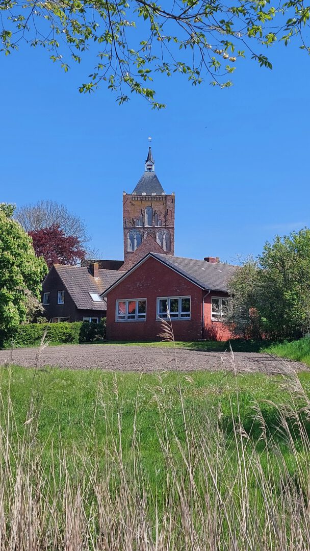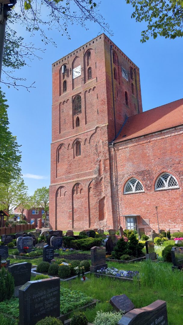 Wir sind in Esens, der Wind hat uns zwar gequält, aber der Regen hat uns verschont. Wir machten eine Pause vor der Kirche und schauen gleich noch in die Stadt.