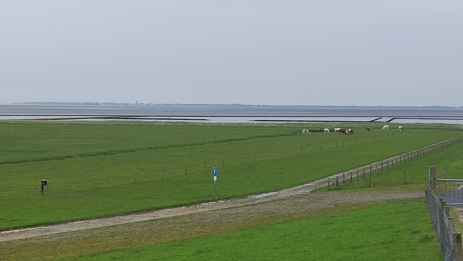 Pause in Dornumersiel. Die Regenfront kommt näher.