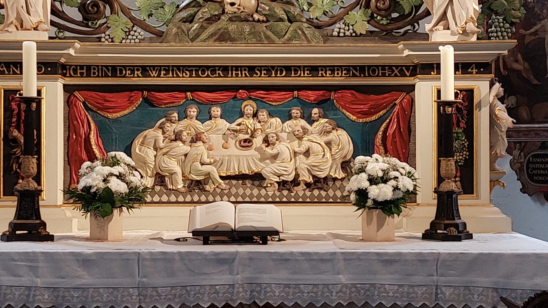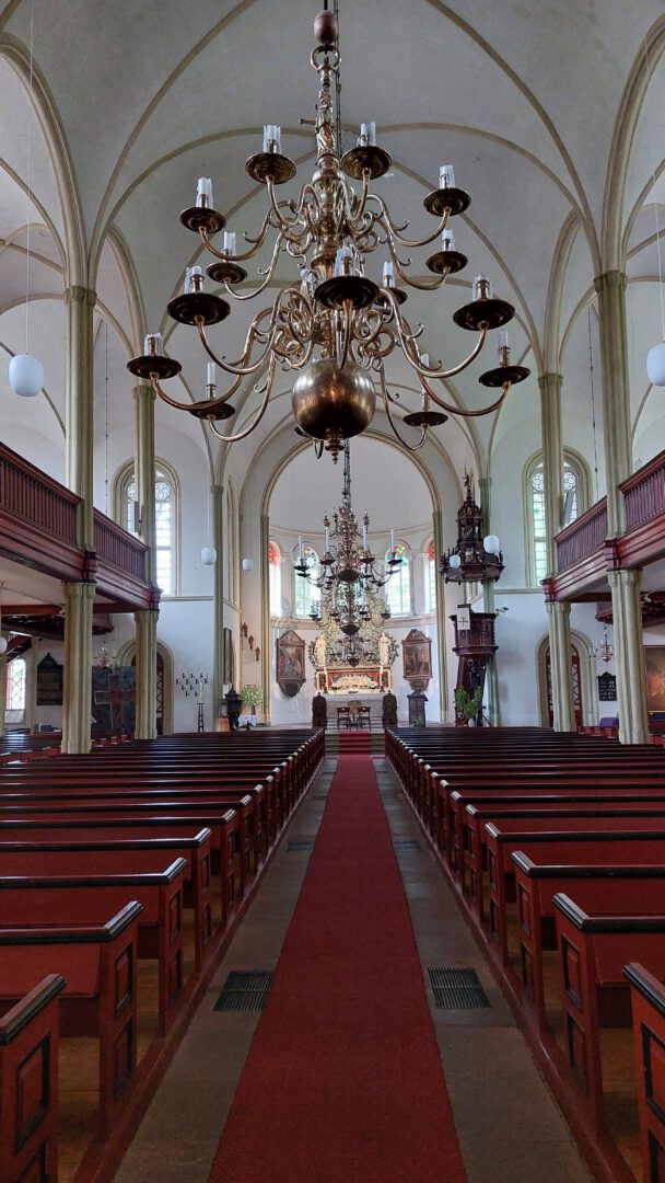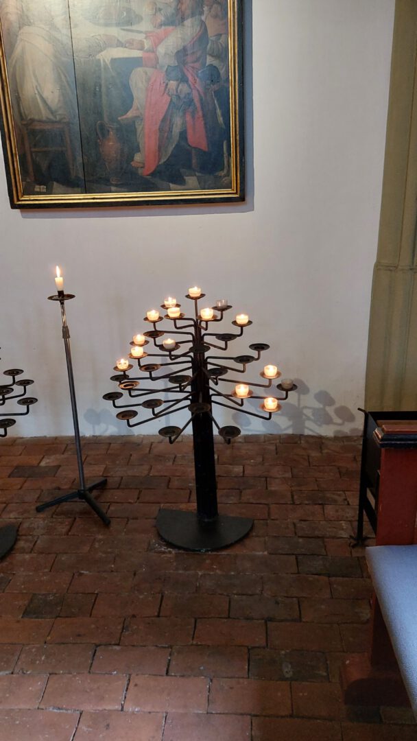 2. Nachtrag, das Innere der Kirche. Natürlich habe ich eine Kerze für uns angezündet, nicht nur, weil der Konfirmationsspruch von Stefan und mir zu sehen ist.