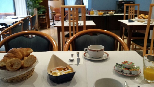 Stichwort Frühstück: So sieht das in der Regel in Frankreich aus, aber selbst als Radler kann man sich daran gewöhnen. Im Hintergrund ist noch so was wie Cornflakes zu entdecken.