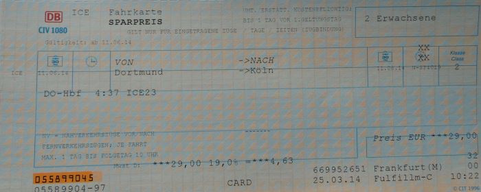 Die erste Fahrkarte ist auch eingetroffen (siehe Bild).