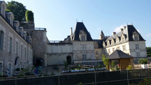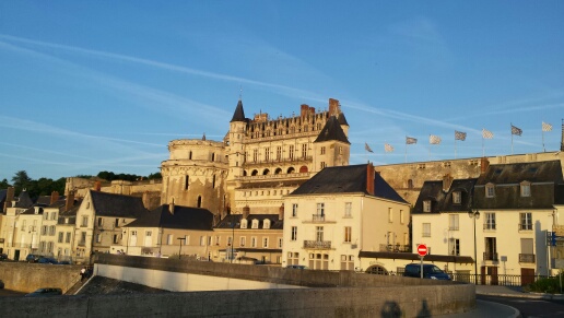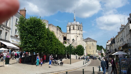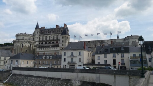 16.00: In Amboise. Zu sehen sind die Brücke über die Loire, das Schloss und die Straße hinter dem Schloss.