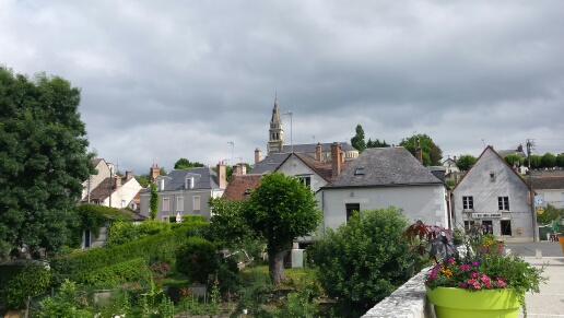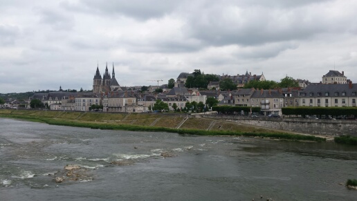 12.00: In Blois. Schöner Blick auf die Stadt mit dem Schloss. Pause, dann weiter.