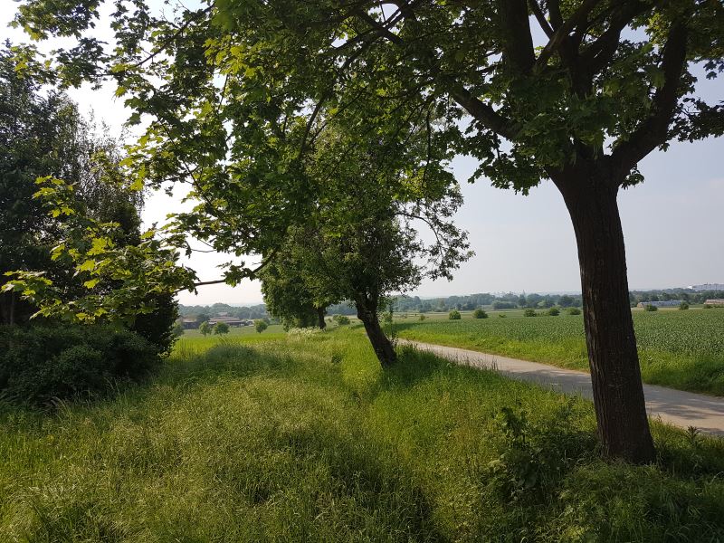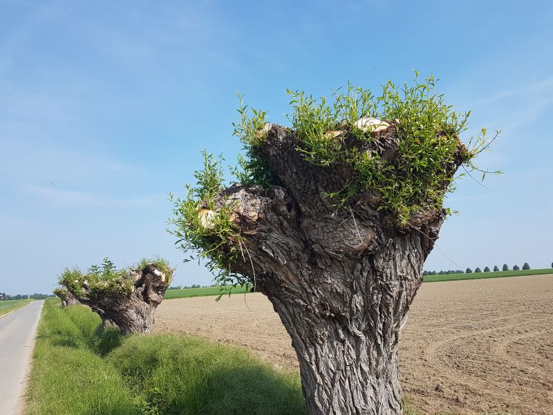 beschnittene Weiden und eine Bank, die man wohl vergessen hat