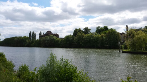 14.30: Die Oise an unserer Strecke hat nur wenige schöne Ecken. Siehe Bilder. Dafür müssen wir uns die stark befahrene Straße u.a. mit vielen Lkws teilen.