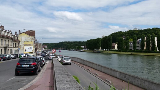 10.00: Wir stehen an einer Kreuzung kurz vor Pontoise, sind also gleich an der Oise. Die Fahrt bis hierher war anstrengend und teils sehr steil..