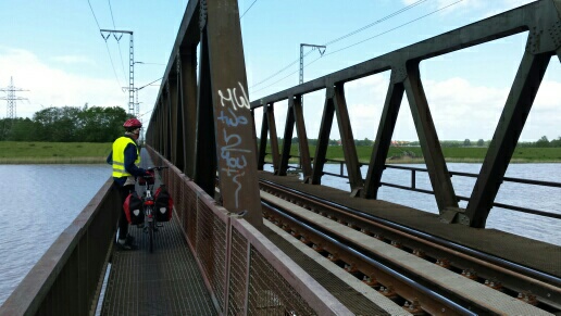 10.45 h: Etwa 20 km noch bis Papenburg. Wir kommen gut vorwärts, der Wind kommt von der Seite und den paar Regentropfen sind wir davon gefahren.