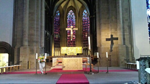 Jetzt die Kirche von Veltheim, die das Programm vorhin nicht genommen hat, der Dom von innen und das Wasserstraßenkreuz. Die Sonne scheint, es ist angenehm.