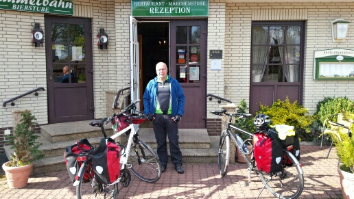 104km, geschafft. Wir sitzen in Leese vor unserem Hotel und gönnen uns erstmal ein Bier.