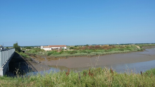 10.00: An der Seudre, ein weit verzweigtes Delta voller Austernzucht. Aber wir bleiben standhaft. 40 km liegen hinter uns.