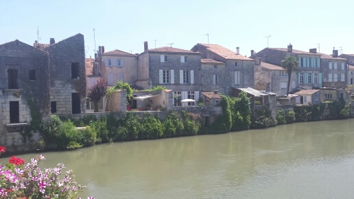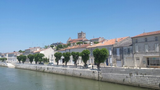 Jetzt nach 7 km im Tal der Charente in Savinien. Ganz schöner Ort. Wir sitzen im verlassenen Zentrum in der einzigen Bar und trinken Diabolo Menthe. Tut gut.