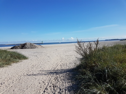 Kleiner Nachtrag, weil die Fähre so schnell war: wir sind jetzt auf dem Ostsee-Radweg und stehen am Strand.