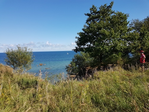 Der Weg bis hier zwar stellenweise ruppig, aber schön. Zur Linken immer die Ostsee, die man sogar riechen konnte. Steilküste, was einige sehr heftige Steigungen zur Folge hatte.