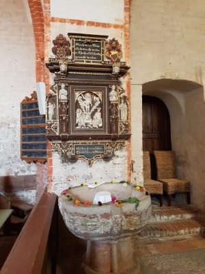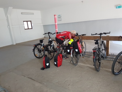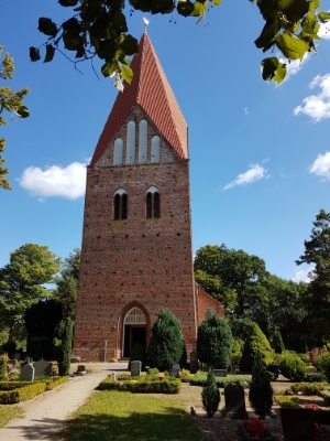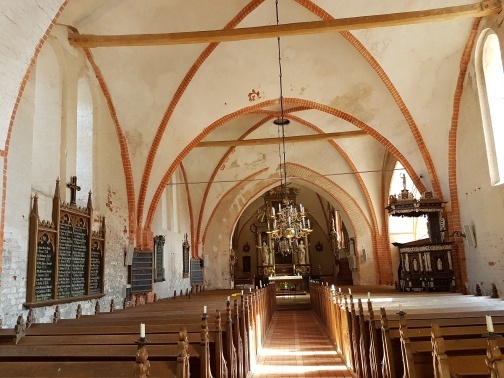 Dies Mal kein Bild vom Hotel, sondern von der Fahrradgarage – nobel. Ein erstes Bild vom Hafen und von unterwegs noch die Kirche von Proseken. Die wir nur gesehen haben, weil wir uns einmal verfahren haben. Aber das hat sich gelohnt.