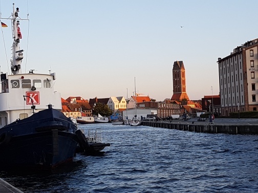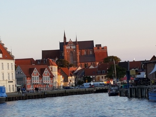 Wir haben das Ziel nach 77 km erreicht, Wismar, das Hotel am alten Hafen, das zu Recht so heißt. Von meinem Fenster aus kann ich die Boote der Fischverkäufer im Hafen sehen.