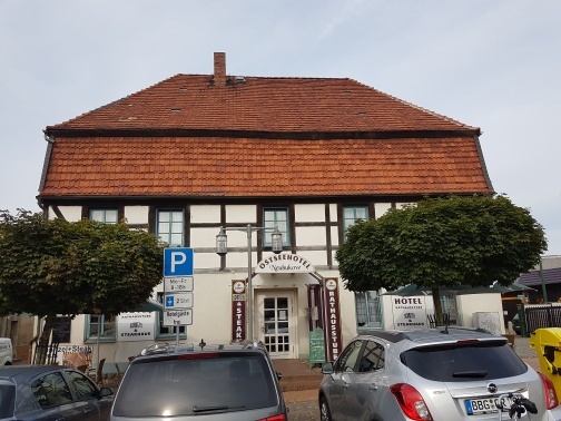 Notizen aus der Provinz, in diesem Fall aus Neubuckow. Gelandet sind wir im Ostsee-Hotel am Markt. Ein Fachwerkhaus nicht ganz neueren Datums. Schließlich hat hier auch schon Heinrich Schliemann übernachtet, 1841 und 1883. Oder 1843 und 1881. Nach 75 km, am Ende bei drückendem Wetter, ist einem das nicht ganz so wichtig.