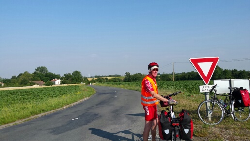 12.45: Gut 50km geschafft. Pause in St. Remy, einem kleinen Nest westlich von Niort.