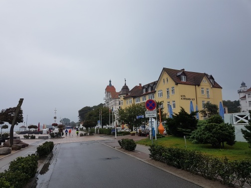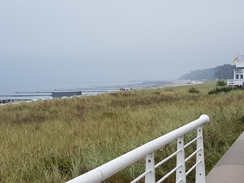 Es regnet nicht mehr, aber es ist trübe und kühl. Das Radfahren erwärmt etwas, die Orte an der Strecke weniger. Was aber wie in Heiligendamm nicht unbedingt an den Automaten liegt, wo man mitten im Wald Kurtaxe und Parkgebühren bezahlen soll. So schön die Orte sind, bei diesem Wetter wirken sie nicht.